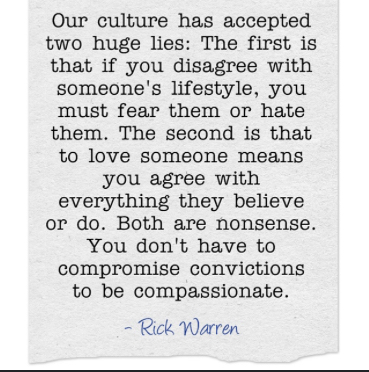 Love & Compassion June 4, 2022 / Mia In light of this being “Pride Month,” I wanted to share a Rick Warren quote I thought was appropriate: Have a great weekend! Share this: Click to email a link to a friend (Opens in new window) Email Click to share on X (Opens in new window) X Click to share on LinkedIn (Opens in new window) LinkedIn Click to share on Pinterest (Opens in new window) Pinterest Click to share on Facebook (Opens in new window) Facebook Like Loading... Related